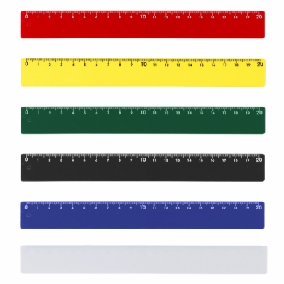 Régua plástica colorida de 20 ou 30cms com verso liso. Impressão serigráfica.