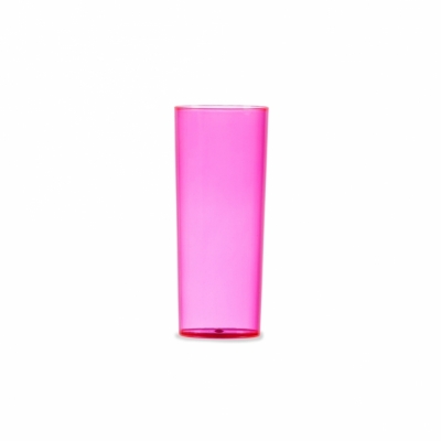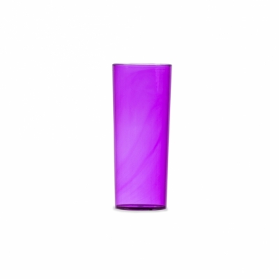 Copo long drink 330ml, material plástico, cores translúcidas. Impressão serigráfica.