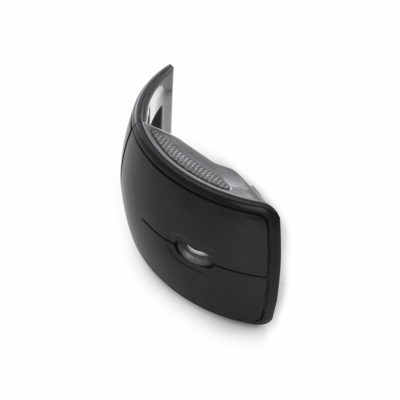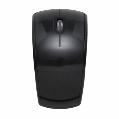 Mouse óptico de tecnologia wireless e retrátil. Mouse anatômico de material plástico resistente, possui rolamento plástico translúcido, laterais texturizadas, parte traseira dobrável, luz inferior óptica vermelha, receptor Nano USB 2.4 GHZ. Funcionamento através de 2 pilhas AAA(não acompanha).