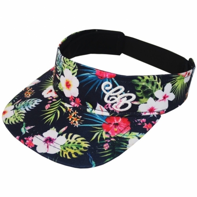 Viseira micro fibra, floral, com bordado, regulador de velcro.