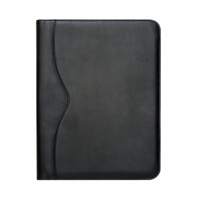 Pasta convenção de couro sintético, possui calculadora solar plástica de 8 dígitos, suporte para cartão, suporte com visor para cartão de identificação, suporte para arquivar documentos, suporte para caneta(não acompanha caneta) e bloco com 20 folhas pautadas.