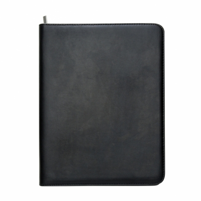 Pasta convenção de couro sintético com zíper, possui 2 compartimentos grandes para arquivar documentos, compartimento interno com zíper, 7 divisórias pequenas para documentos, suporte com visor para cartão de identificação, suporte para caneta(não acompanha caneta) e bloco com 20 folhas pautadas.