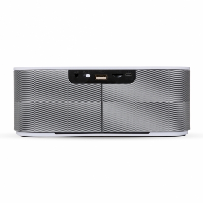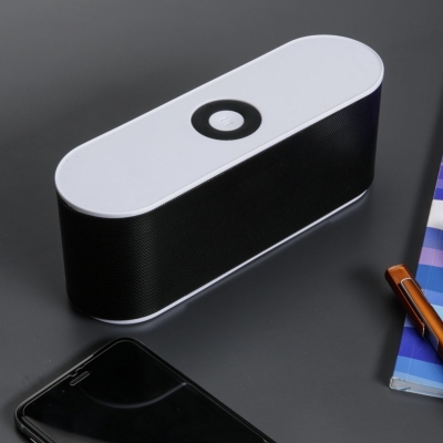 Caixa de Som Multimídia. Design fino e material plástico resistente, possui: botão On/Off no verso, botão >|| (MODE), botão < retroceder faixa ou diminuir volume, botão > avançar faixa ou aumentar volume, botão PLAY/PAUSE e atender chamadas, entrada P2/auxiliar(caixinha de som pode ser conectada no computador, basta segurar o botão central para alternar o modo), entrada microUSB, microfone, entrada microSD(cartão de memória) e entrada USB(leitura de pen drive), parte inferior possui borrachas anti deslizantes e auto-falantes laterais. Acompanha cabo USB.