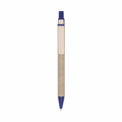 Caneta ecológica de papelão com detalhes coloridos. Clip de madeira e
