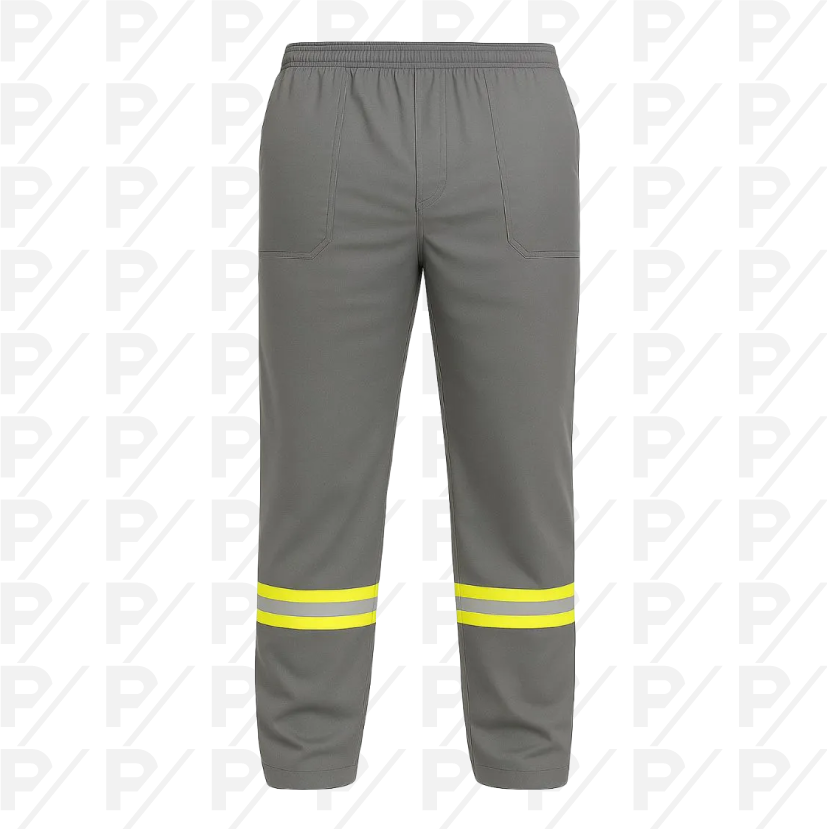 Calça modelo industrial, em brim santista ou jeans, opção de faixas refletivas. Impressão Serigráfica ou Bordado.