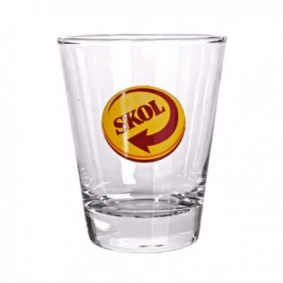Copo de vidro. Personalizado com impressão do logo da empresa.