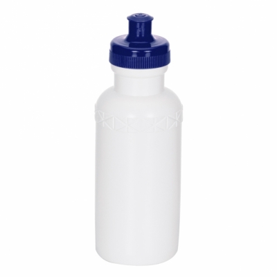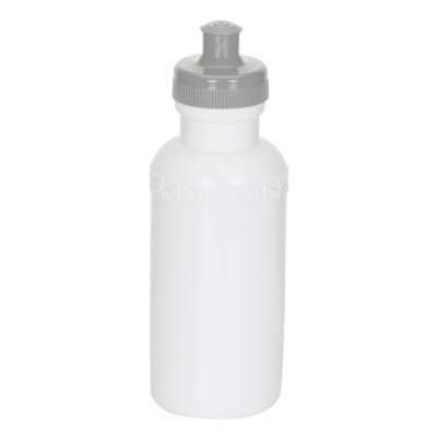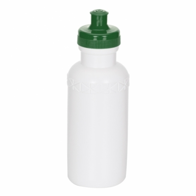 Squeeze 500ml plástico livre de BPA, possui corpo branco com tampa colorida e detalhe em relevo na parte superior. Tampa rosqueável com bico de silicone.