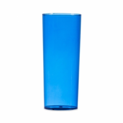 Copo long drink 330ml, material plástico, cores translúcidas. Impressão serigráfica.