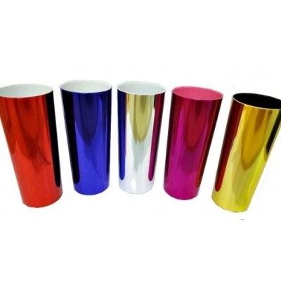 Copo long drink 330ml, material plástico, cores metalizadas. Impressão serigráfica