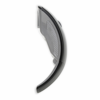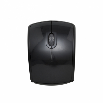 Mouse óptico de tecnologia wireless e retrátil. Mouse anatômico de material plástico resistente, possui rolamento plástico translúcido, laterais texturizadas, parte traseira dobrável, luz inferior óptica vermelha, receptor Nano USB 2.4 GHZ. Funcionamento através de 2 pilhas AAA(não acompanha).