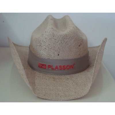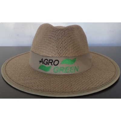 Chapéu Juta, fabricado em palha sintética natural, com fita externa e bordado.