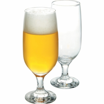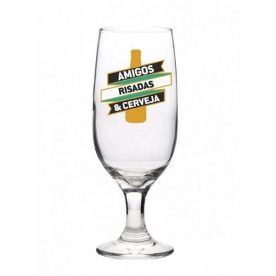 Taça de cerveja de vidro. Personalizado com impressão do logo da empresa.