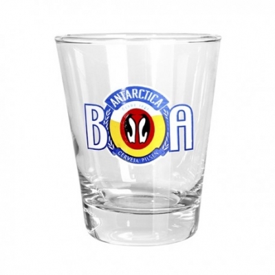 Copo de vidro. Personalizado com impressão do logo da empresa.