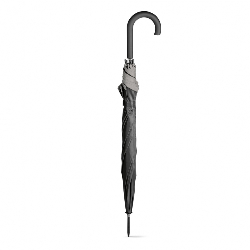 Guarda-chuva em poliéster com faixa refletora. Pega revestida a borracha e abertura automática. ø960 x 815 mm