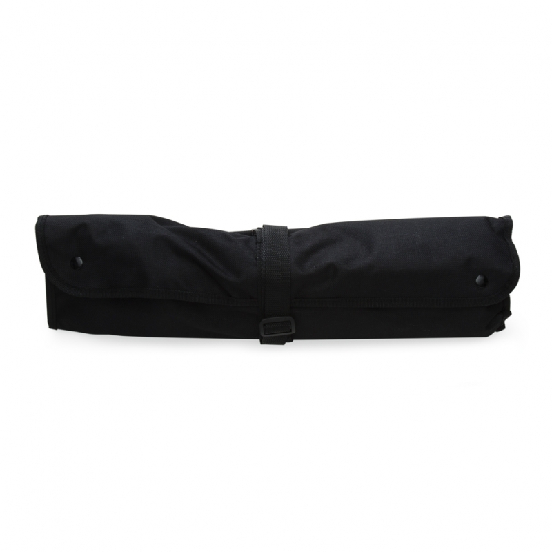 Kit churrasco 8 peças em estojo de nylon. Contém espátula, garfo, faca, pegador, dois saleiros, luva e avental (também utilizado como estojo). Talheres de inox com acabamento de madeira e avental de nylon com alça ajustável ?€" possui botão e alça com fivela para lacre.