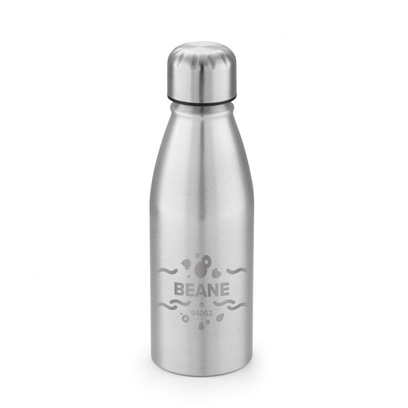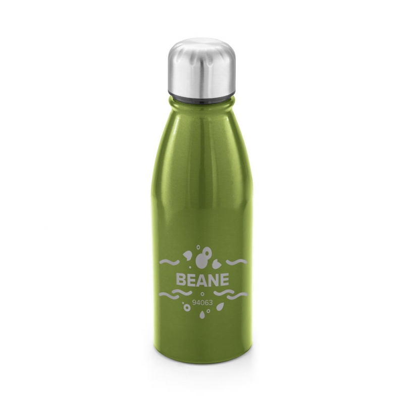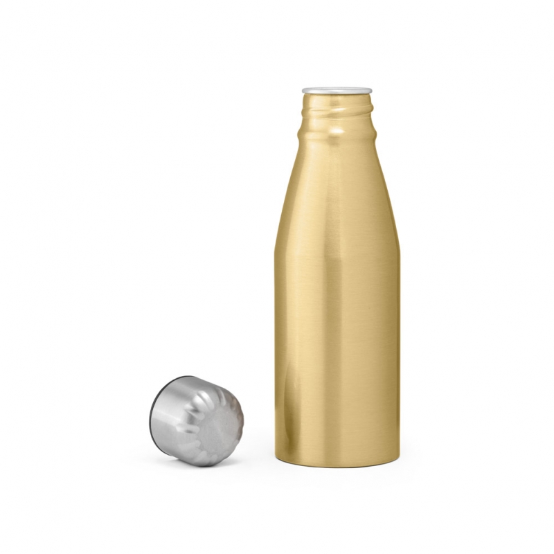 Squeeze em alumínio com tampa em aço inox e capacidade até 500 ml.